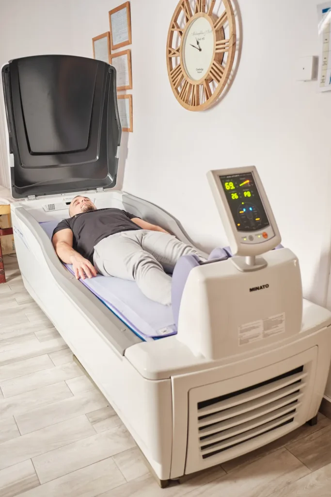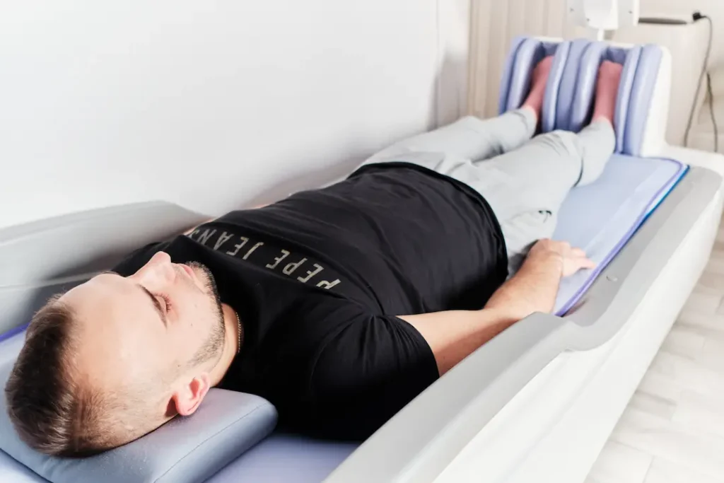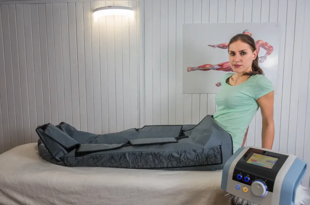 Mechaniczny drenaż limfatyczny w specjalnych mankietach – usuwa obrzęki, wspomaga krążenie i detoksykuje organizm.
